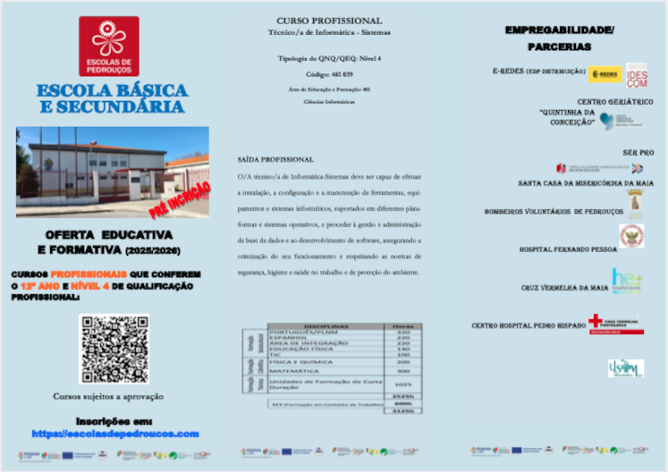 Os cursos profissionais oferecem uma aprendizagem mais prática e direcionada, permitindo aos alunos desenvolver competências técnicas especializadas. No Agrupamento de Escolas de Pedrouços, disponibilizamos formação na área da Saúde, das Redes Elétricas, da Informática, de Apoio Familiar e de Apoio à Comunidade, preparando os alunos para integrarem o mercado de trabalho com uma qualificação reconhecida.